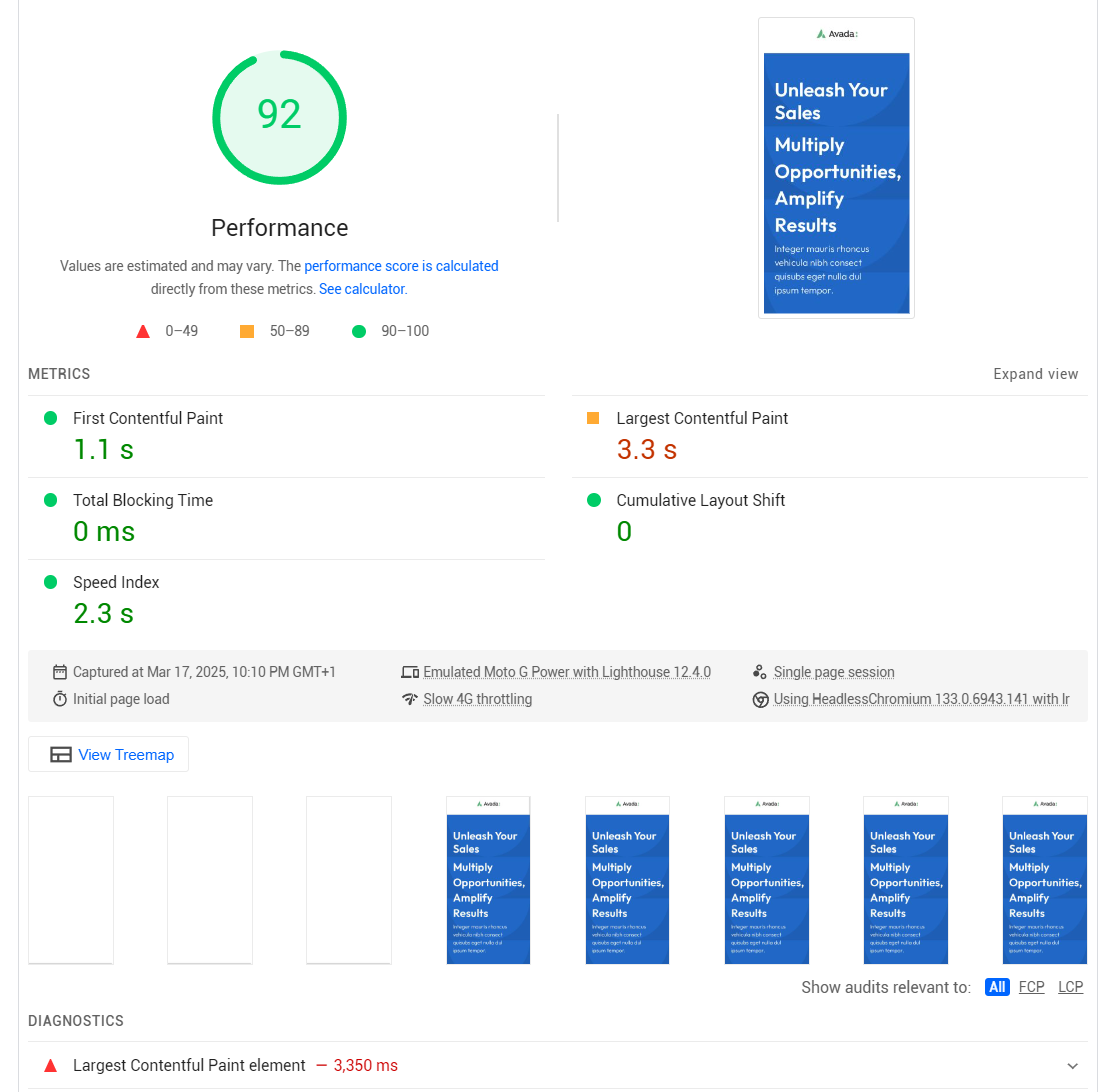So we’ve seen that Elementor and Elementor Pro can be brought into line and encouraged to score well in PageSpeed Insights. What about Avada? Let’s take a look at the popular website builder and theme and see how it fares.