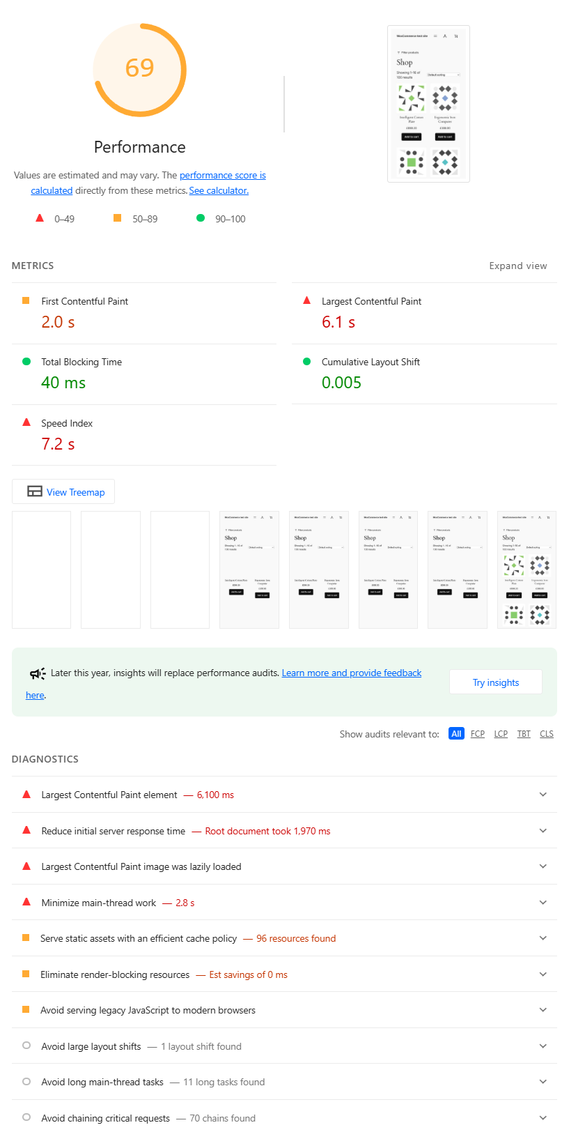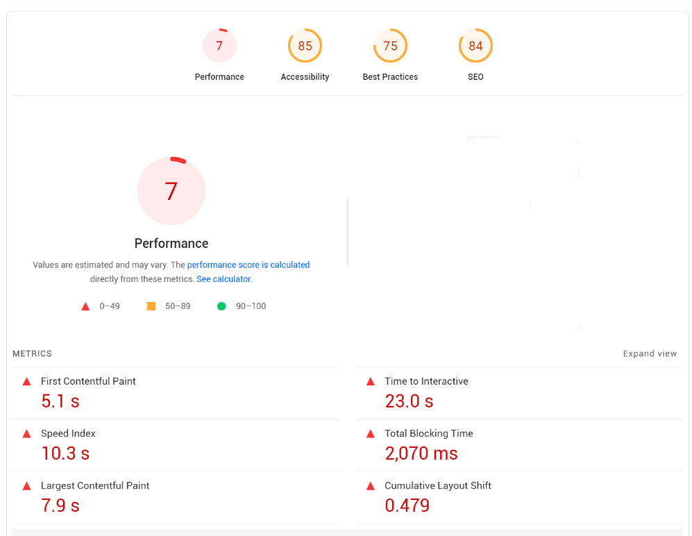 We need to try to get this realistic. Every client Woo site I’ve worked on has had a lot of plugins. A ton, in fact. Many WooCommerce extras for payment gateways, taxes, memberships, subscriptions … then plugins for fraud checking and mitigation and don’t forget reviews and customer follow-ups. These are great, fine. Essential for a world-class ecommerce site. But they’re bad news. And they help contribute to PageSpeed scores you’d be embarrassed to take home to meet your mother. Ones like this: