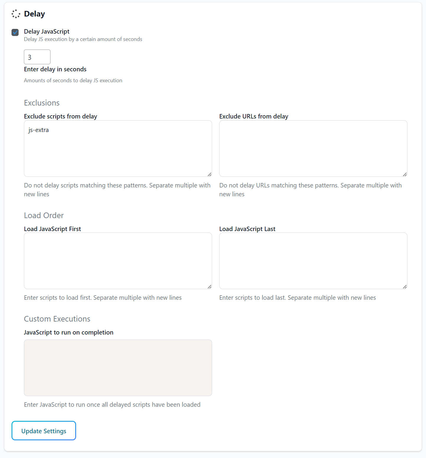 I’ll just set the default delay settings (with js-extra excluded as standard) and see what happens…